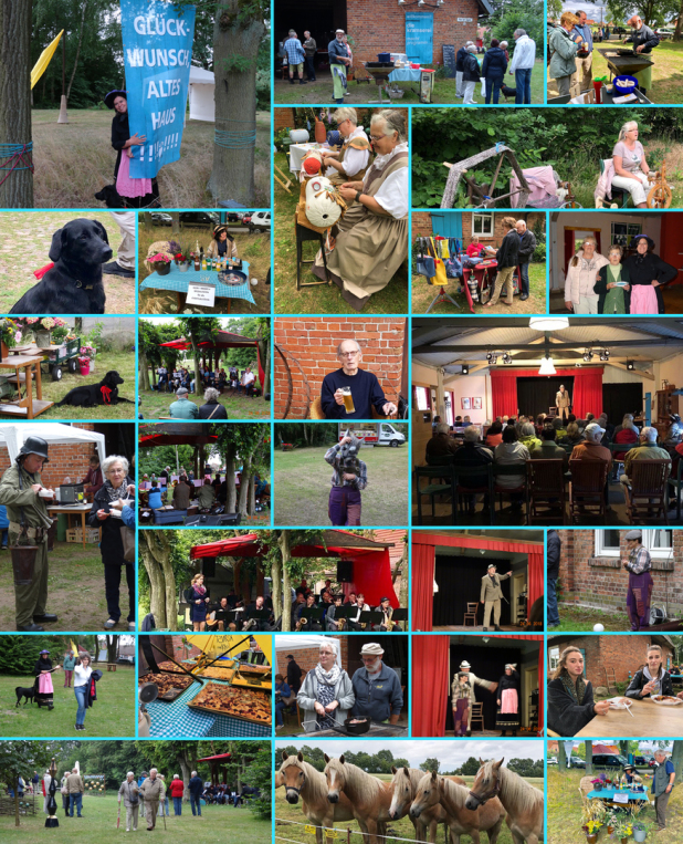 * 21.06.20, ab 11 Uhr – 177. Hofgeburtstag mit Live-Musik >>> Thilius und Diana aus Neustadt-Glewe, Kunst-Hand-Werk >>> Spinnen und Wollgenüsse, Gesundheitswässerchen, Trödeleien, Tonerzeugnisse, Blumenkränzen, Filzen, Holzarbeiten, Tortentafel und Meistergrill ... und allerlei Köstlichkeiten >>> Würstchen mit Kraut, Fleisch und Gemüse vom Grill, Kuchen und Torten und viel Süffiges mit und ohne Alkohol: Holunderblütensekt und Waldbeerenbowle.