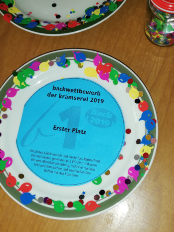 Wer am Backwettbewerb 2020 im Rahmen unseres Hofgeburtstages teilnehmen möchte, herzlich gern. Die Kuchen und Torten bitte am Sonntag bis 10 Uhr zur kramserei bringen. Und unbedingt vorab anmelden!! Gewinne sind 3 x 2 VIP-Eintrittskarten für eine Abendveranstaltung in der kramserei mit Sekt und Schnittchen und anschließendem Treffen mit den Künstlern.